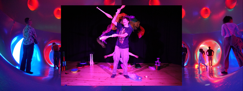 Dan Rose presents Step inside a circus tent like no other as performer Dan Rose entertains families inside Luminarium: Myriad!Roll up, roll up! Step inside a circus tent like no other- the Masquerade of the Myriad for Dan of All Tricks’ crazy carnival.The kaleidoscopic world of the Luminarium provides the perfect circus tent for Dan Rose to wow audiences with a wide range of tricks. This fast-paced, high-energy show takes you on a whistle stop tour of juggling, daring balancing tricks, and a whirlwind of circus tomfoolery, all set within the glowing, mysterious magic of the Luminarium. Dan Rose is a professional juggler and circus arts facilitator from London. His latest family show will elicit gasps and giggles as Dan invites the crowd to join the fun. Participation from both children and adults is encouraged throughout. At the grand finale, youngsters will even be able to perform in the circus themselves beneath the glowing canopy of Myriad’s starry ceiling.